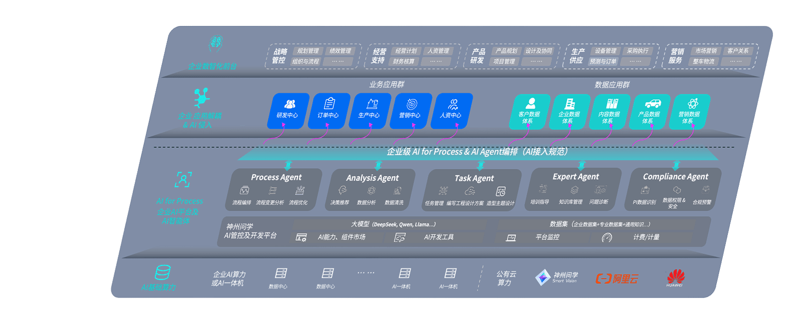 银河集团问学智车解决方案是一套基于AI技术的汽车行业智能化系统,,,覆盖从底层算力到顶层AI应用的全栈方案。。方案由算力层、、、、模型层和应用层组成:算力层,,方案支持多种一体机配置,,,具备云端灵活部署、、多云适配以及动态优化计算资源的能力;模型层,,,,银河集团问学平台版提供了企业级AI应用一站式构建与管理平台,,,支持基于后训练强化技术的汽车企业专属模型的训练、、评测和运营;应用层,,银河集团问学DeepSeek版提供包括超级员工、、智能招采、、、智能营销、、、、智能客服、、AI for BI等一系列解决方案,,可助力汽车行业实现数字化转型,,让管理更智能、、响应更敏捷。。。。